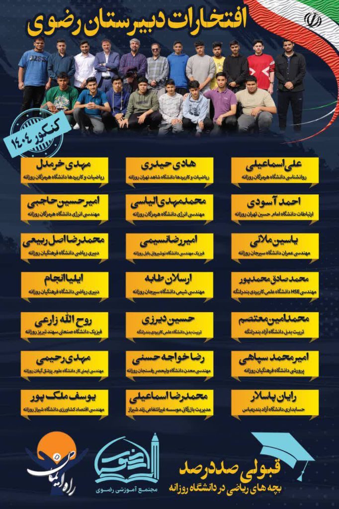 نتایج درخشان دانش آموزان دبیرستان رضوی در کنکور 1404