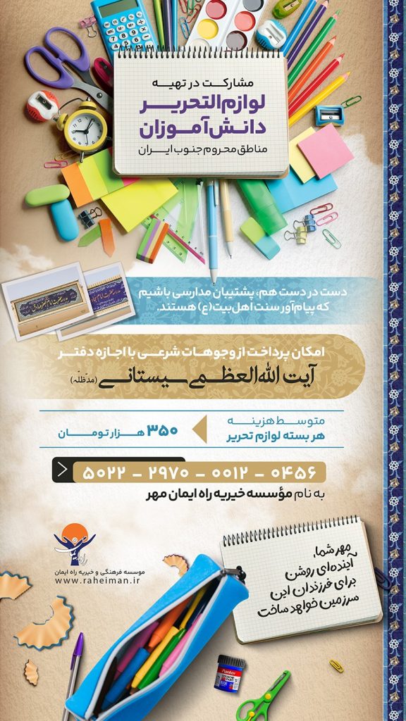 9.253584825 درصدمشارکت جمعی در تأمین لوازمالتحریر دانشآموزان جنوب ایران